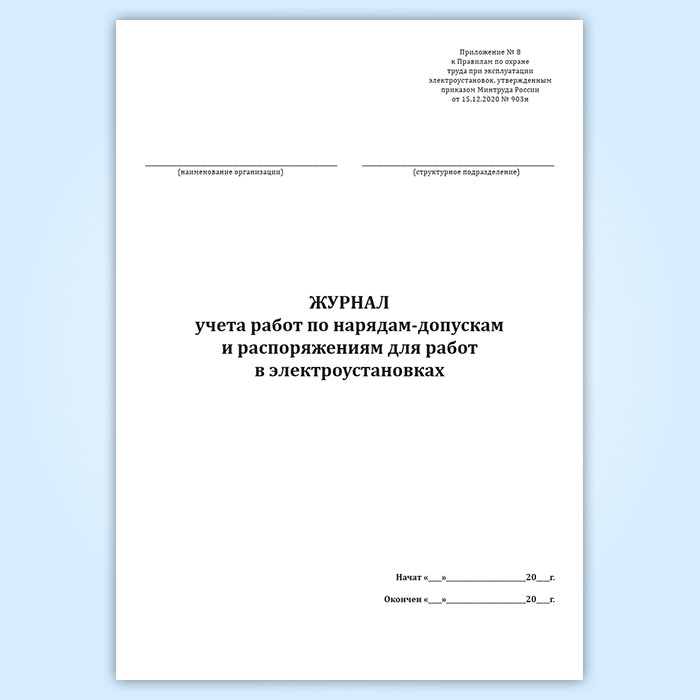 Журнал учета работ по нарядам-допускам и распоряжениям для работы в электроустановках в Магнитогорске купить