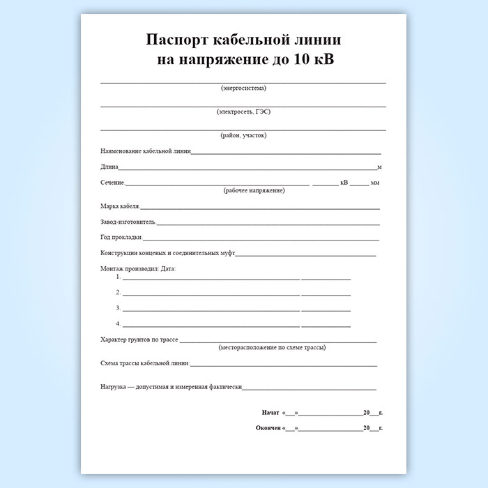 Паспорт кабельной линии на напряжение до 10 кВ в Магнитогорске купить