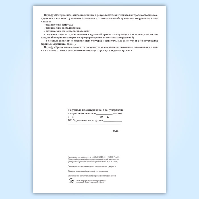 Технический журнал по эксплуатации гидротехнического сооружения в Магнитогорске купить