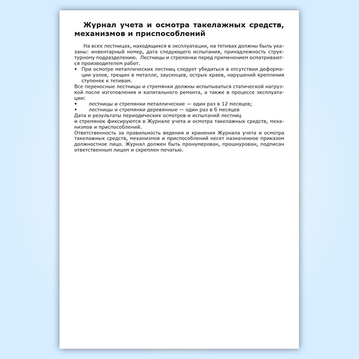 Журнал учета и осмотра такелажных средств, механизмов и приспособлений в Магнитогорске купить