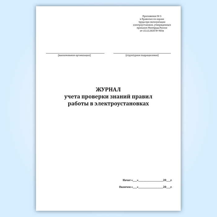 Журнал учета проверки знаний правил работы в электроустановках (Приложение 5) в Магнитогорске купить