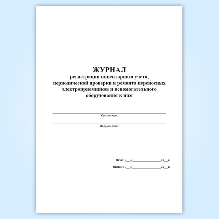 Журнал регистрации инвентарного учета, периодической проверки и ремонта переносных электроприемников и вспомогательного оборудования к ним в Магнитогорске купить