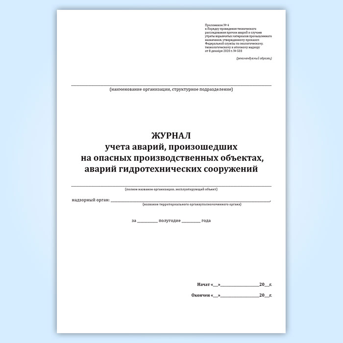 Журнал учета аварий, происшедших на опасных производственных объектах, объектах энергетики и гидросооружениях в Магнитогорске купить
