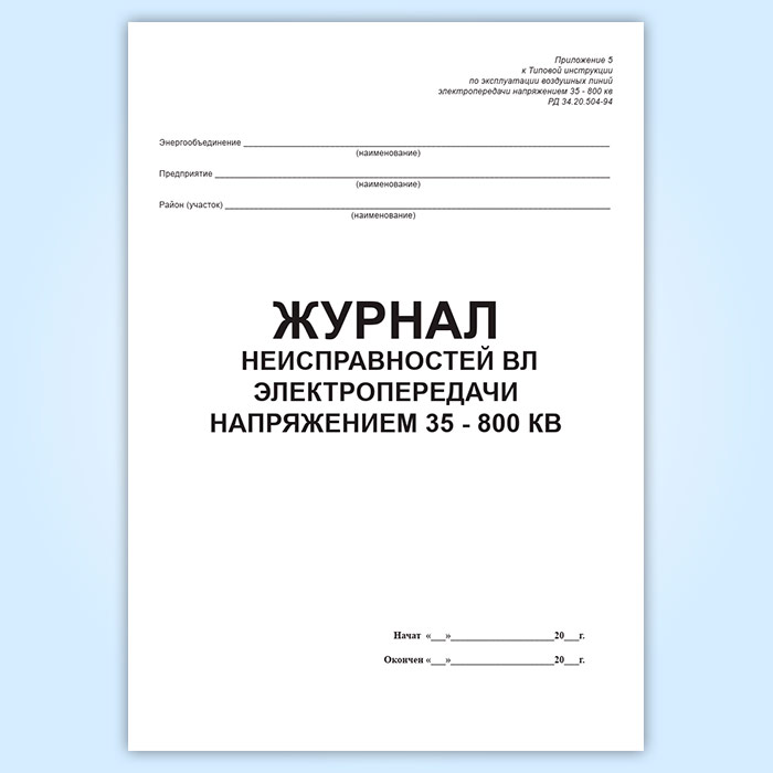 Журнал учета работ на ВЛ электропередачи напряжением 35-800 квВ в Магнитогорске купить