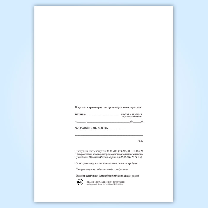 Вы получаете печатную продукцию прошнурованной и c местом для вашей печати в соответствии с действующими нормативными документами: