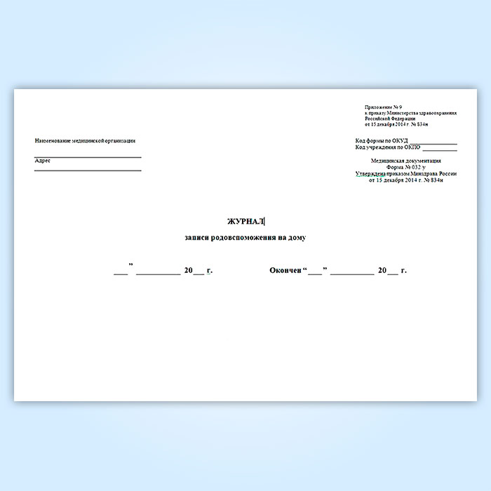 Журнал записи родовспоможения на дому (форма 032/у) в Магнитогорске купить