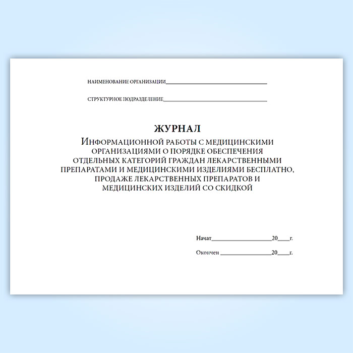 Журнал информационной работы с медицинскими организациями о порядке обеспечения отдельных категорий граждан лекарственными препаратами и медицинскими изделиями бесплатно, продаже лекарственных препаратов и медицинских изделий со скидкой в Магнитогорске купить