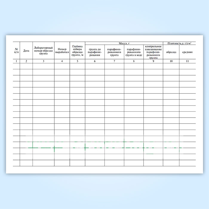 Журнал определения плотности грунта методом взвешивания в воде парафинированных образцов в Магнитогорске купить