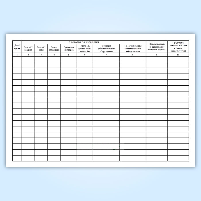 Журнал плановых мероприятий по бассейну в Магнитогорске купить