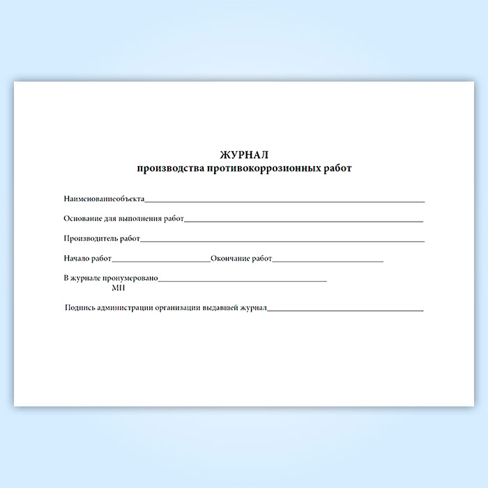 Журнал производства противокоррозионных работ в Магнитогорске купить