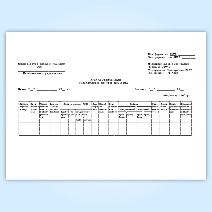 Журнал регистрации кумулятивных свойств вещества (форма № 340-у) в Магнитогорске купить