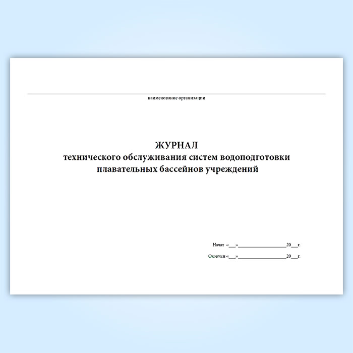 Журнал технического обслуживания систем водоподготовки плавательных бассейнов учреждений в Магнитогорске купить