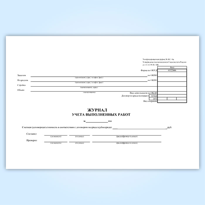Журнал учета выполненных работ (форма КС-6а) в Магнитогорске купить