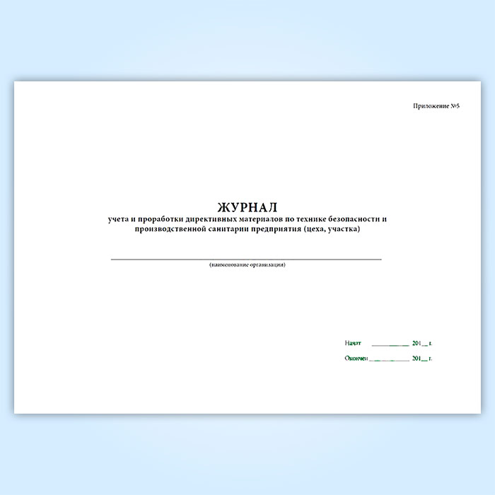 Журнал учета и проработки директивных материалов по технике безопасности и производственной санитарии предприятия (цеха, участка) в Магнитогорске купить