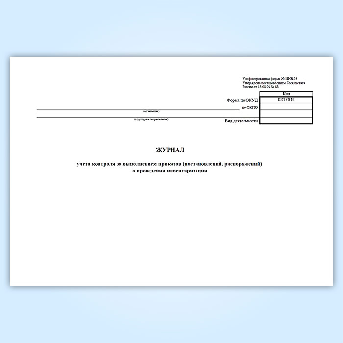 Журнал учета контроля за выполнением приказов (постановлений, распоряжений) о проведении инвентаризации (унифицированная форма ИНВ-23) в Магнитогорске купить