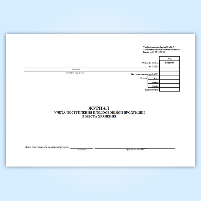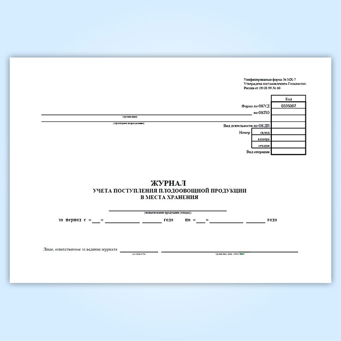 Журнал учета поступления плодоовощной продукции в места хранения (форма МХ-7) в Магнитогорске купить