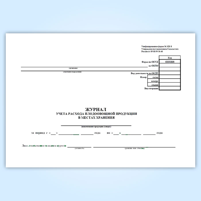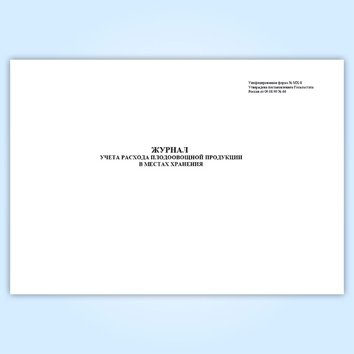 Журнал учета расхода плодоовощной продукции в местах хранения (форма МХ-8) в Магнитогорске купить