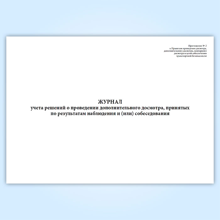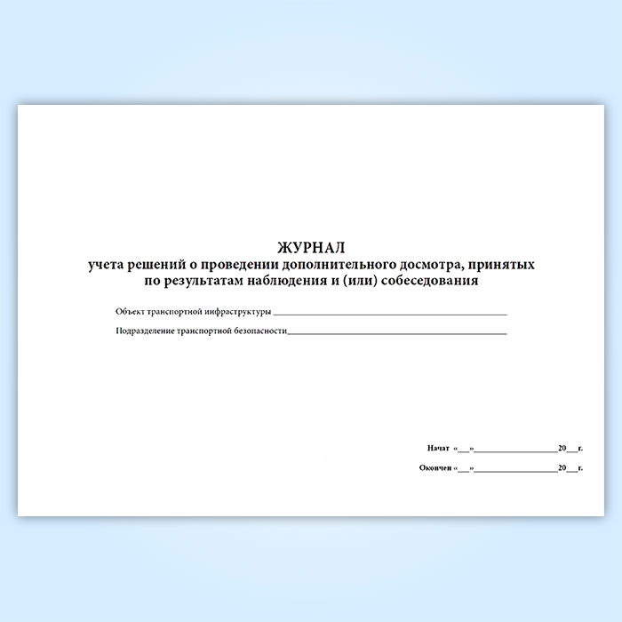 Журнал учета решений о проведении дополнительного досмотра, принятых по результатам наблюдения и (или) собеседования в Магнитогорске купить