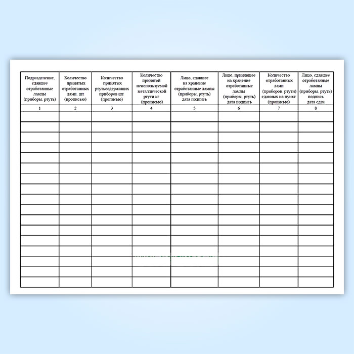 Журнал учета ртутьсодержащих ламп в Магнитогорске купить