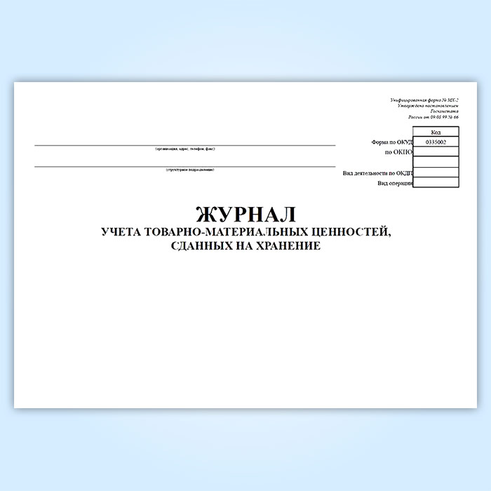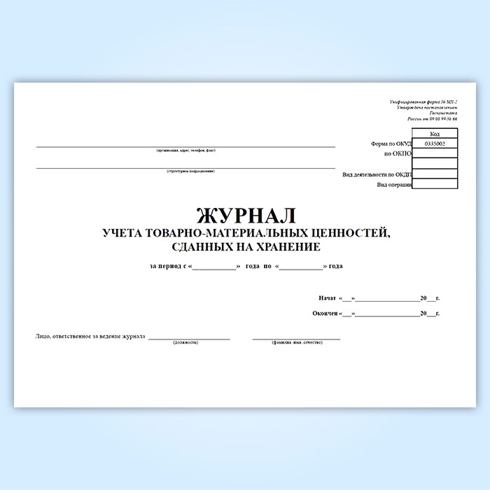 Журнал учета товарно-материальных ценностей, сданных на хранение (форма № МХ-2) в Магнитогорске купить