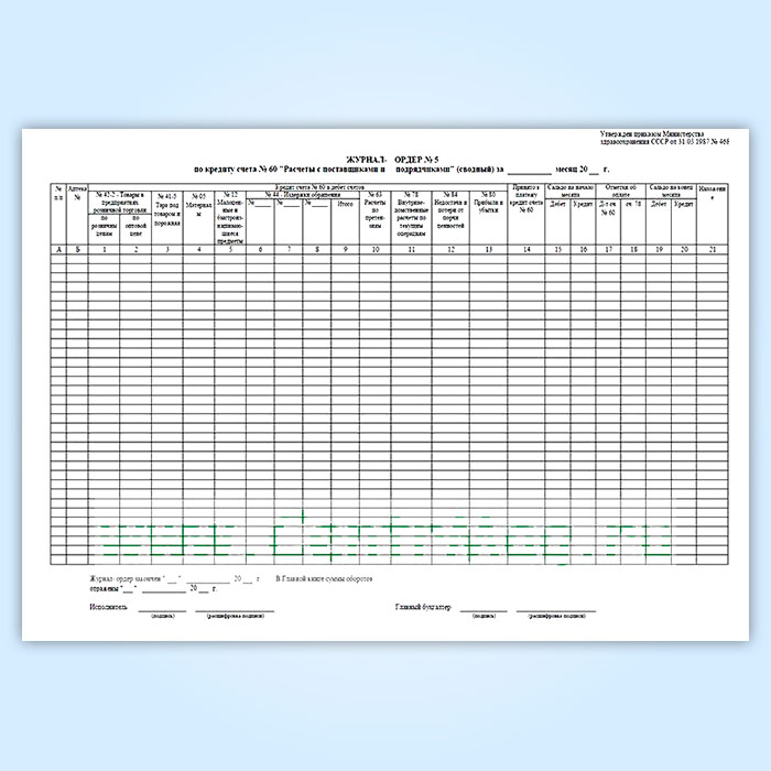 Журнал-ордер № 5 по кредиту счета № 60 «Расчеты с поставщиками и подрядчиками» (сводный) в Магнитогорске купить