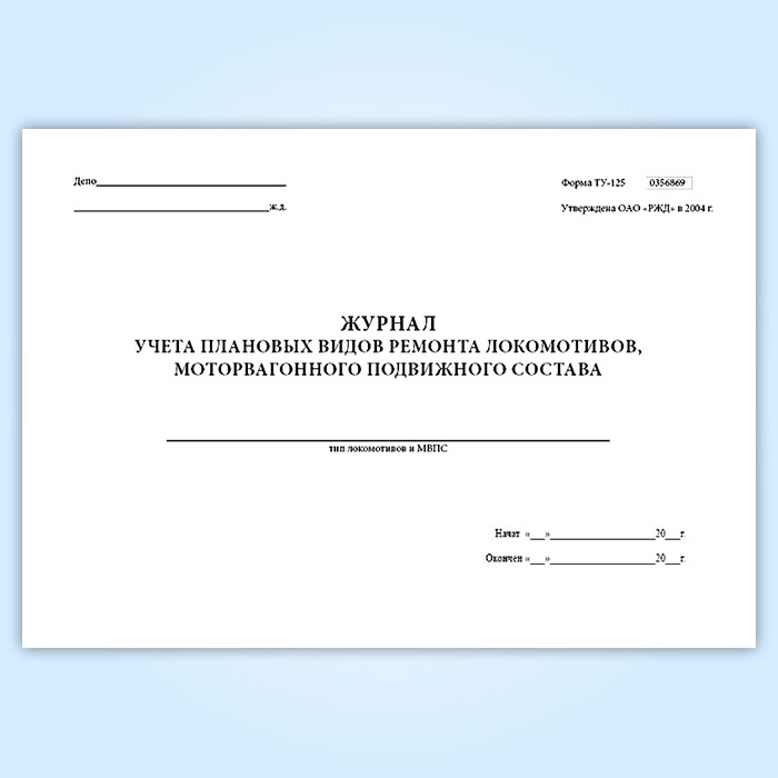 Книга учета плановых видов ремонта локомотивов, моторвагонного подвижного состава (форма ТУ-125) в Магнитогорске купить
