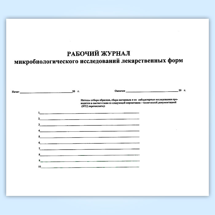Рабочий журнал микробиологических исследований лекарственных форм (382/у) в Магнитогорске купить