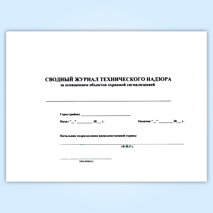 Сводный журнал технического надзора за оснащением объектов охранной сигнализацией в Магнитогорске купить
