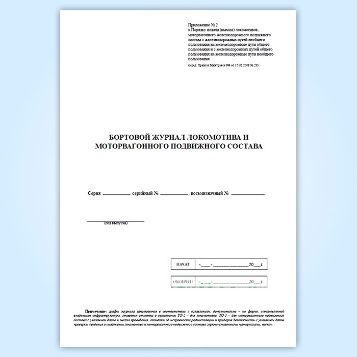 Бортовой журнал локомотива и моторвагонного подвижного состава в Магнитогорске купить
