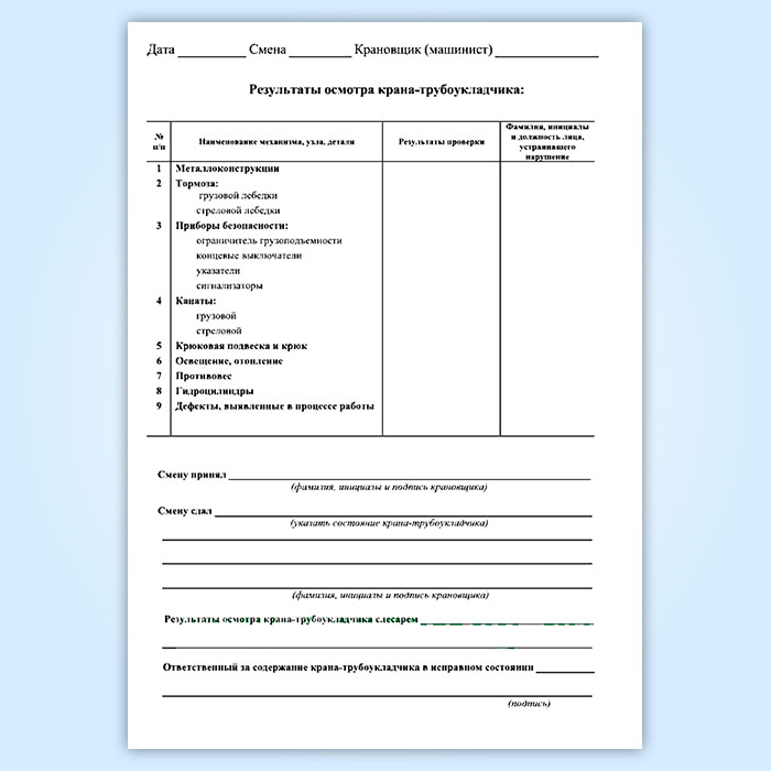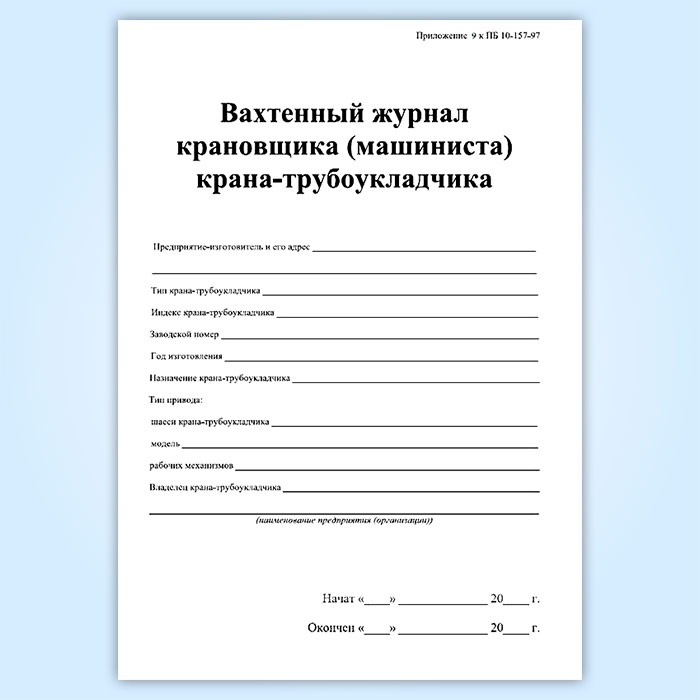 Вахтенный журнал крановщика (машиниста) крана-трубоукладчика в Магнитогорске купить