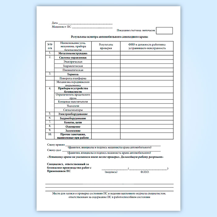 Вахтенный журнал машиниста автомобильного стрелового крана в Магнитогорске купить