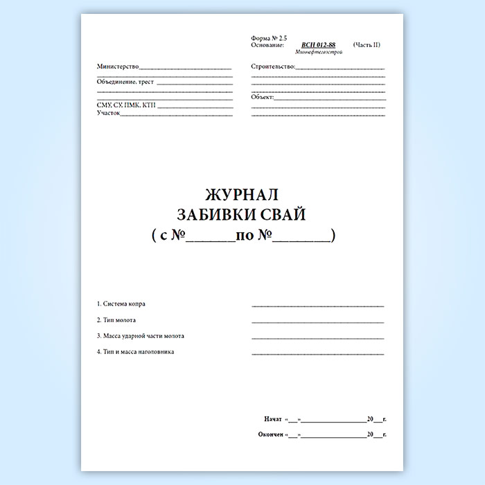 Журнал забивки свай (форма 2.5) в Магнитогорске купить