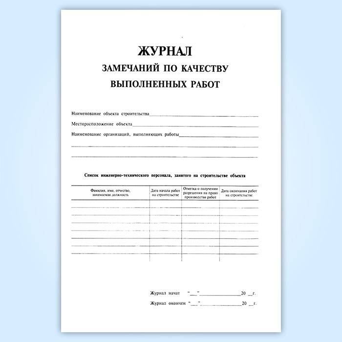Журнал замечаний по качеству выполненных работ в Магнитогорске купить