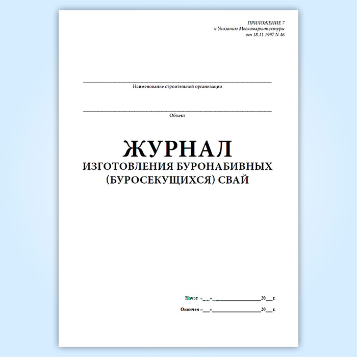 Журнал изготовления буронабивных (буросекущихся) свай в Магнитогорске купить