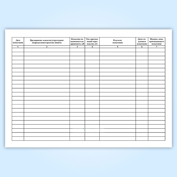 Журнал испытаний средств защиты из диэлектрической резины и полимерных материалов в Магнитогорске купить