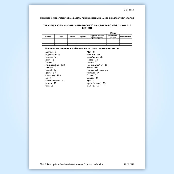 Журнал описания проб грунта, взятого при промерах в Магнитогорске купить