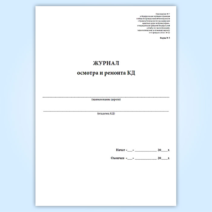 Журнал осмотра и ремонта канатной дороги. Натяжной канат к несущему канату (форма № 3) в Магнитогорске купить