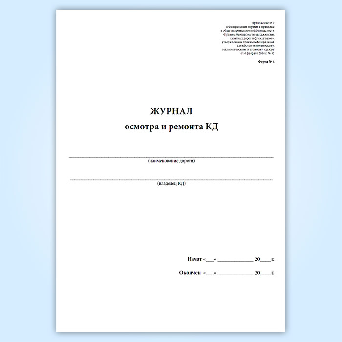 Журнал осмотра и ремонта канатной дороги. Натяжной канат к тяговому и несуще-тяговому канату (форма № 4) в Магнитогорске купить
