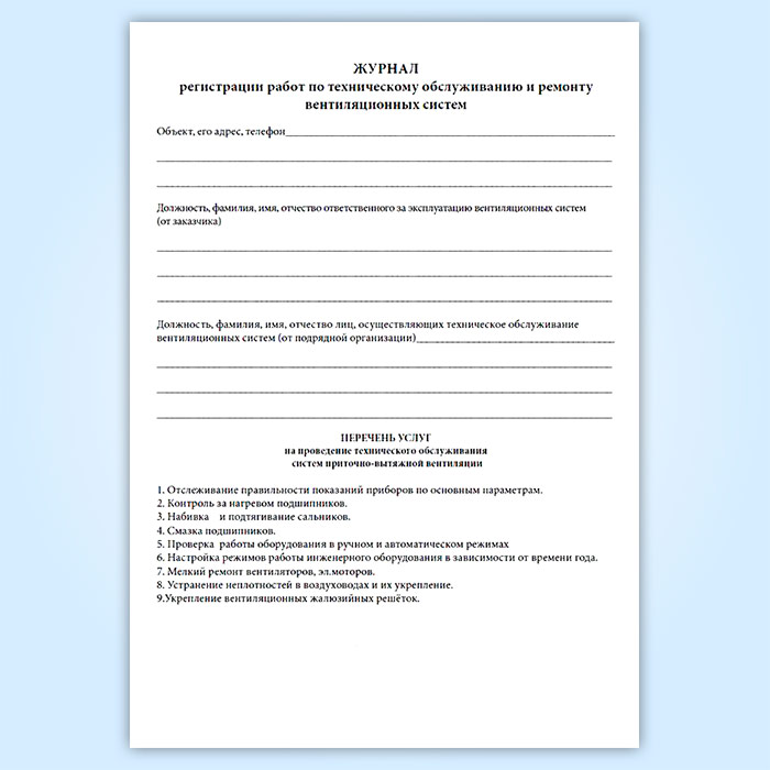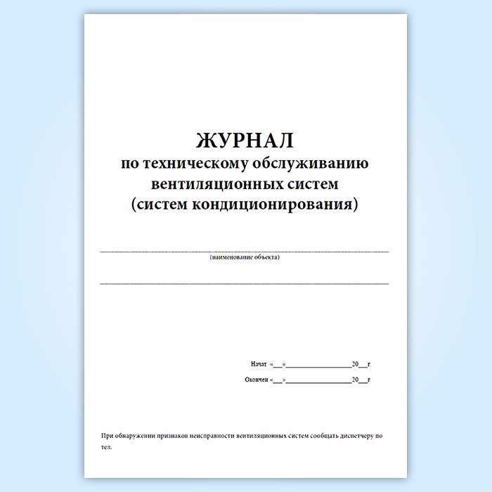 Журнал по техническому обслуживанию вентиляционных систем (систем кондиционирования) в Магнитогорске купить