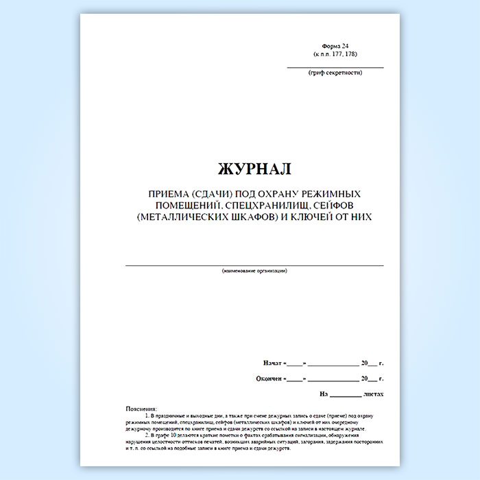 Журнал приема (сдачи) под охрану режимных помещений, спецхранилищ, сейфов (металлических шкафов) и ключей от них в Магнитогорске купить