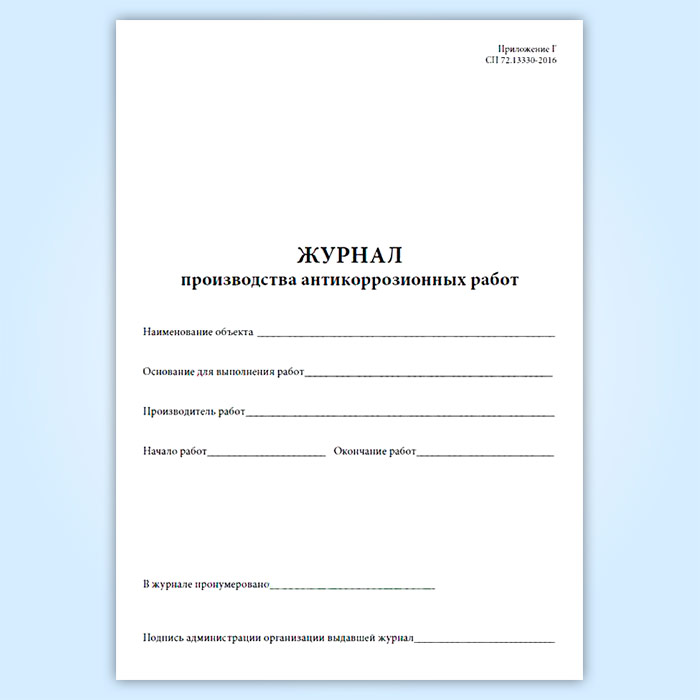 Журнал производства антикоррозионных работ в Магнитогорске купить