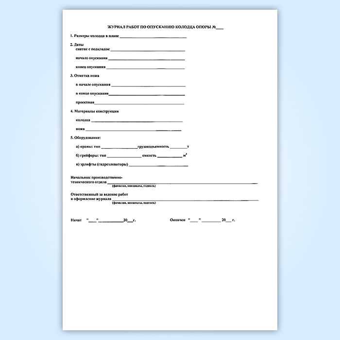 Журнал работ по опусканию колодца опоры в Магнитогорске купить