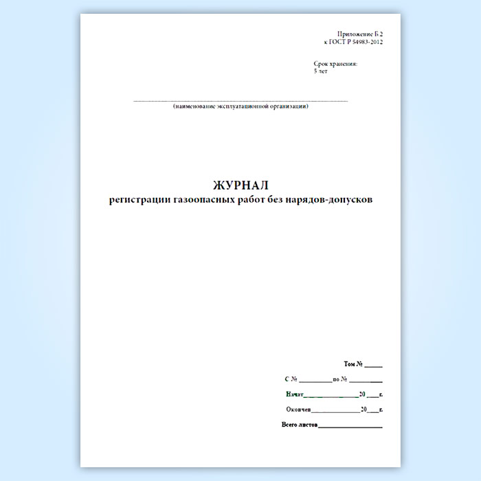 Журнал регистрации газоопасных работ без нарядов-допусков в Магнитогорске купить