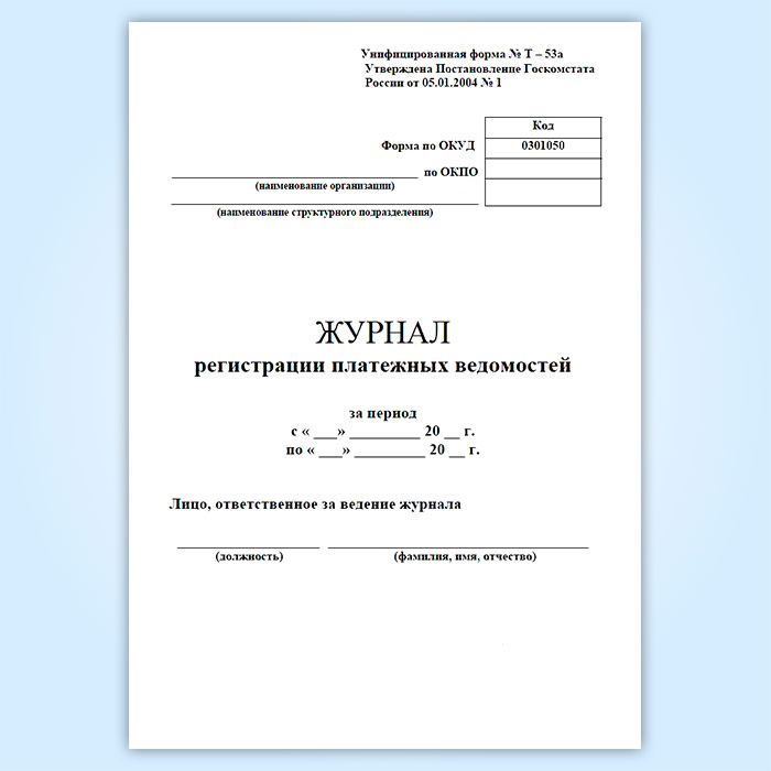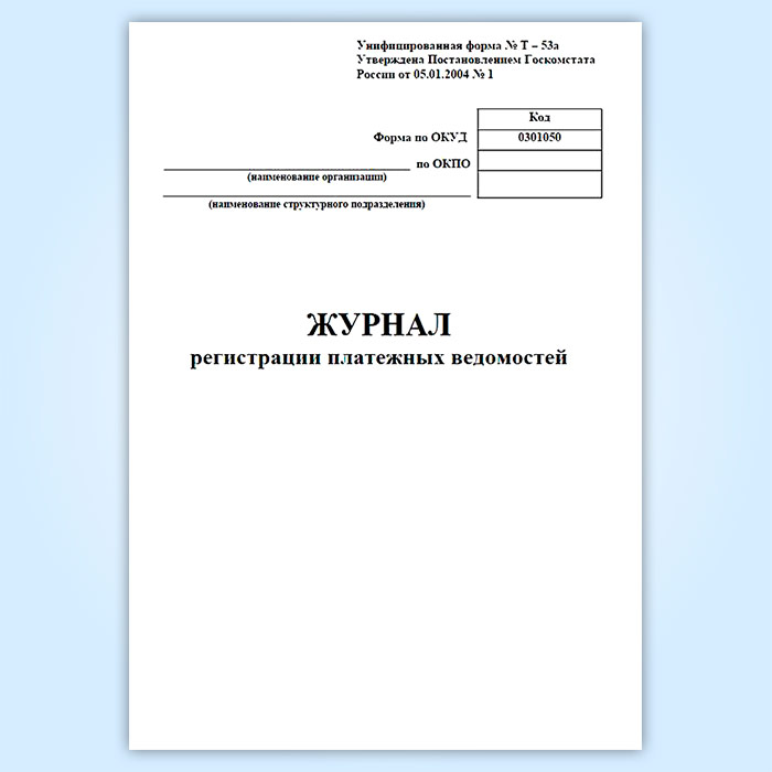 Журнал регистрации платежных ведомостей (унифицированная форма № Т-53а, форма по ОКУД 0301050) в Магнитогорске купить