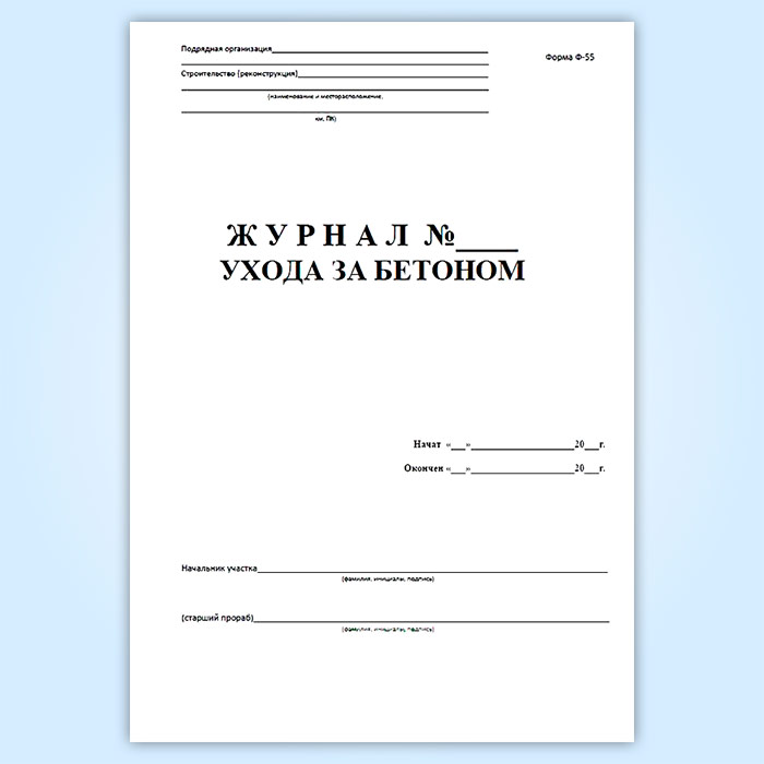 Журнал ухода за бетоном (форма Ф-55) в Магнитогорске купить