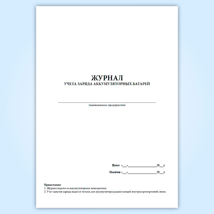 Журнал учета заряда аккумуляторных батарей в Магнитогорске купить