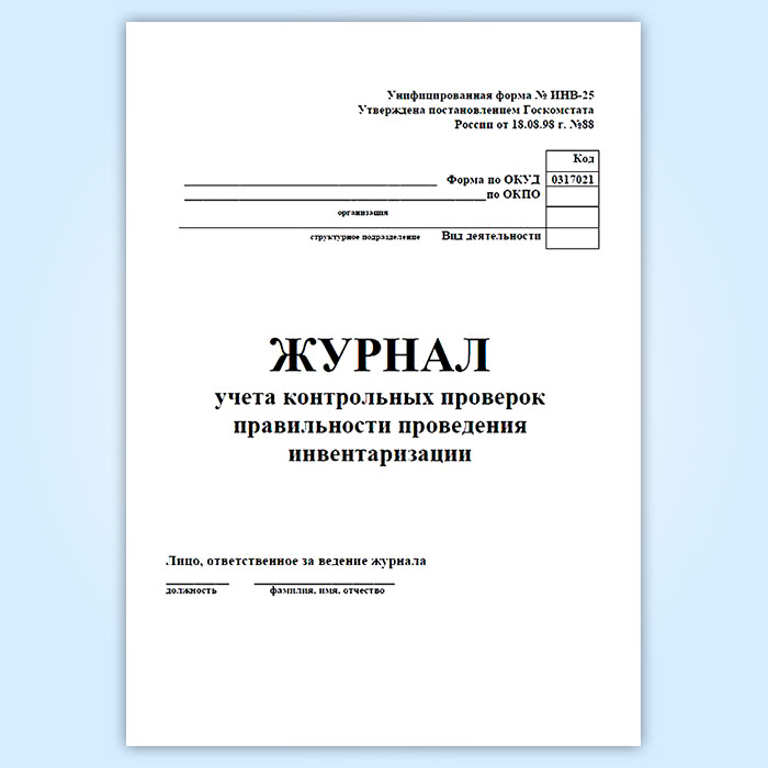 Журнал учета контрольных проверок правильности проведения инвентаризаций (форма ИНВ-25) в Магнитогорске купить
