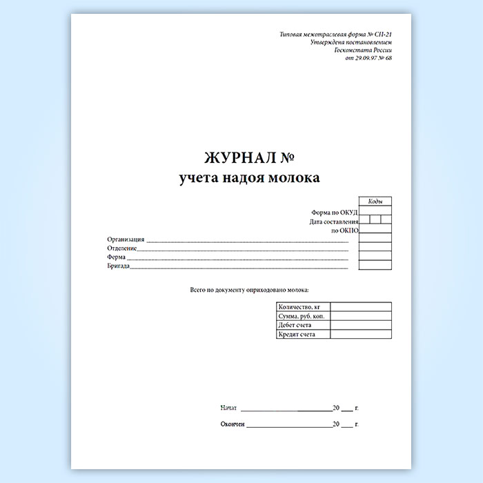 Журнал учета надоя молока (форма № СП-21) в Магнитогорске купить