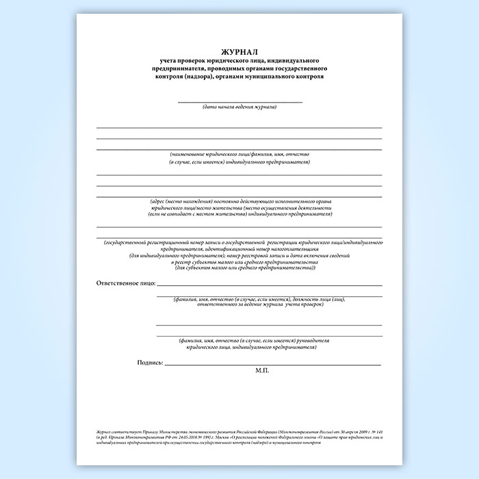 Журнал учета проверок юридического лица, индивидуального предпринимателя, проводимых органами государственного контроля (надзора), органами муниципального контроля (новый) в Магнитогорске купить