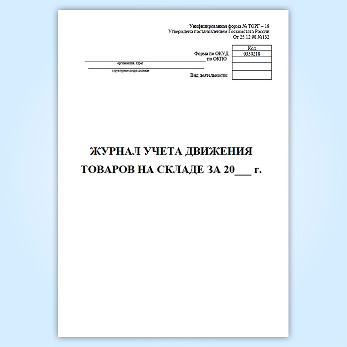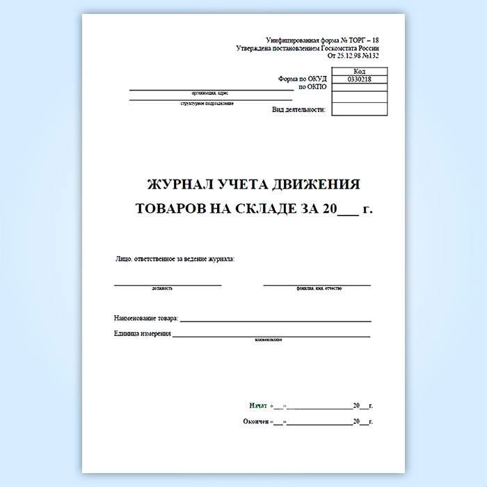 Журнал учета товаров на складе (форма ТОРГ-18) в Магнитогорске купить